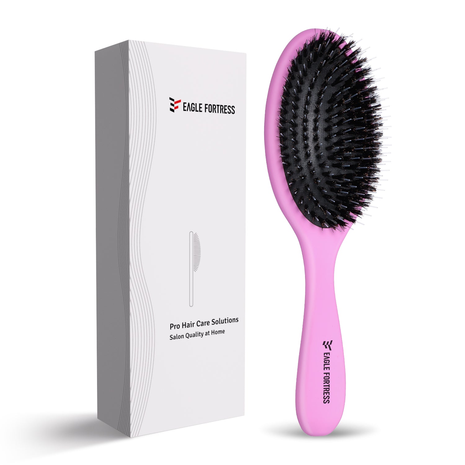 The boar bristles evenly distribute scalp oils from root to tip, reducing dryness and boosting natural shine, while the ball-tip-free nylon bristles glide through tangles without snagging—making it ideal for extensions. Its matte, anti-slip handle feels soft yet secure, giving you total control for both everyday styling and salon-like finishing.