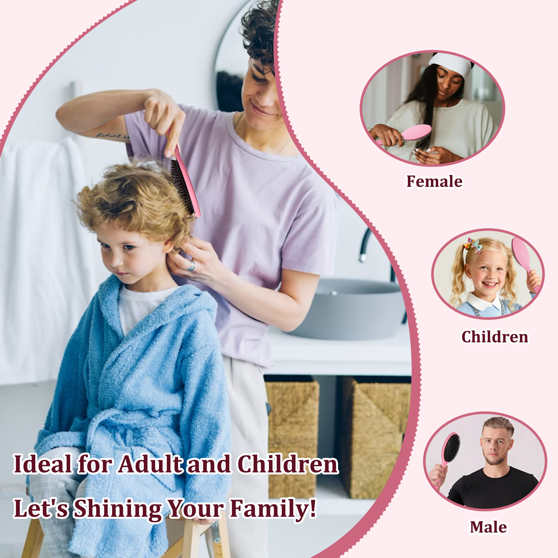 The boar bristles evenly distribute scalp oils from root to tip, reducing dryness and boosting natural shine, while the ball-tip-free nylon bristles glide through tangles without snagging—making it ideal for extensions. Its matte, anti-slip handle feels soft yet secure, giving you total control for both everyday styling and salon-like finishing.