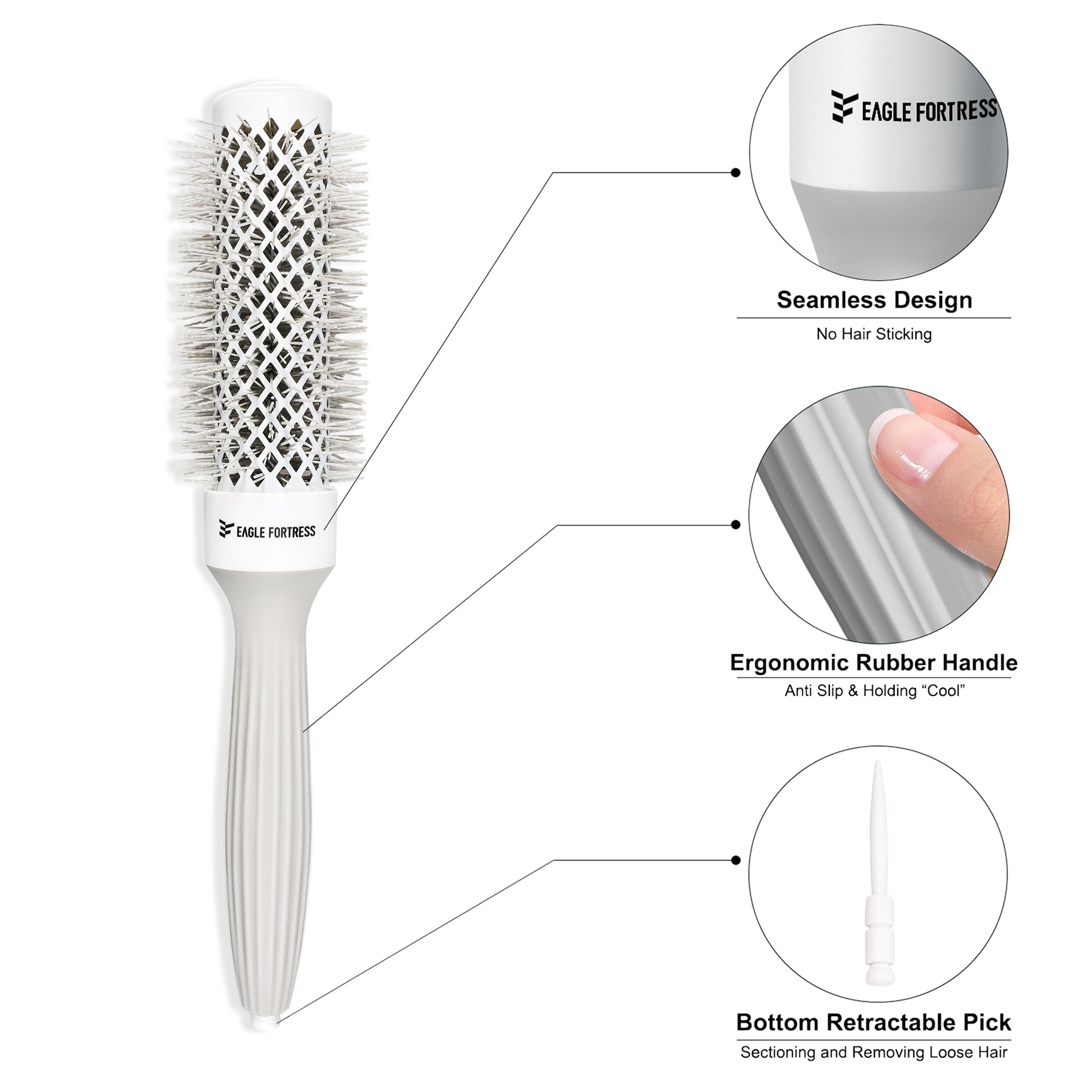 The straight + curved dual bristle system ensures a smooth glide with reliable grip, letting you sculpt volume without tangles. With ceramic + tourmaline ion technology, the extended barrel heats quickly, retains even heat, and reduces frizz—delivering lasting, healthier styles. A retractable bottom pick makes sectioning and cleaning simple, giving you salon-level efficiency in your daily routine.